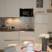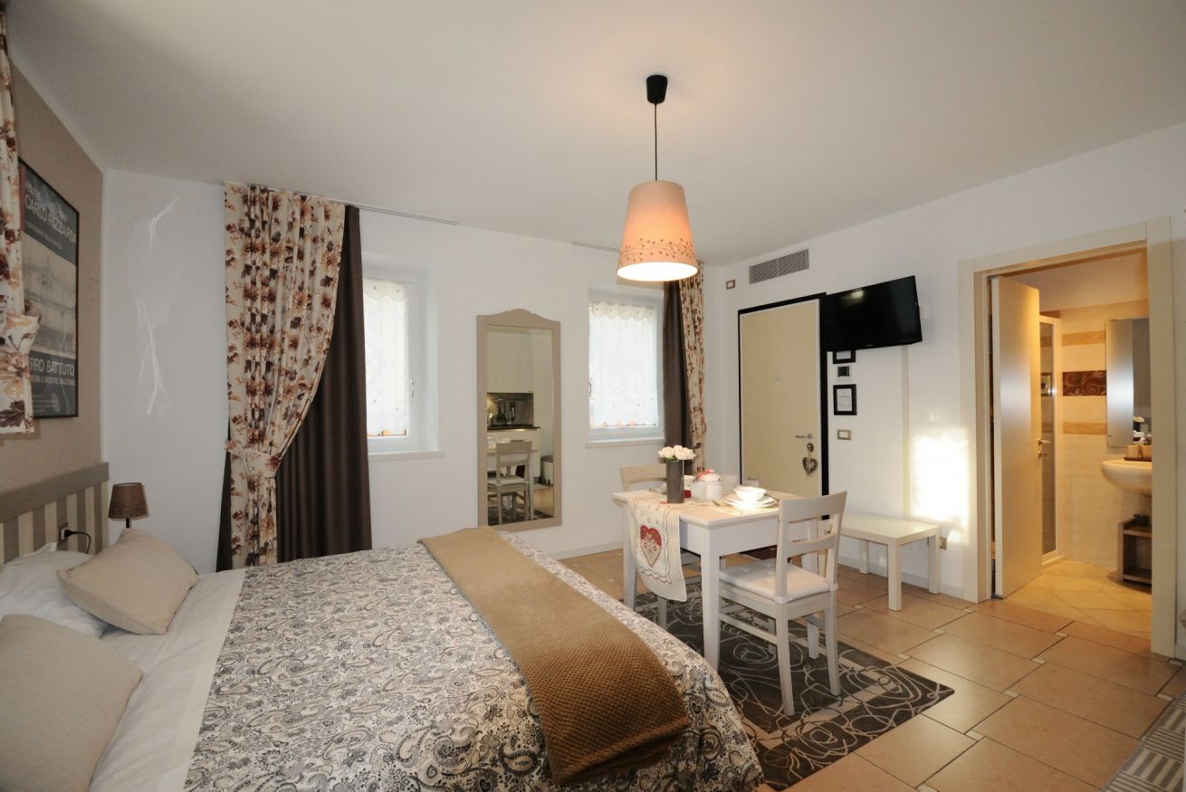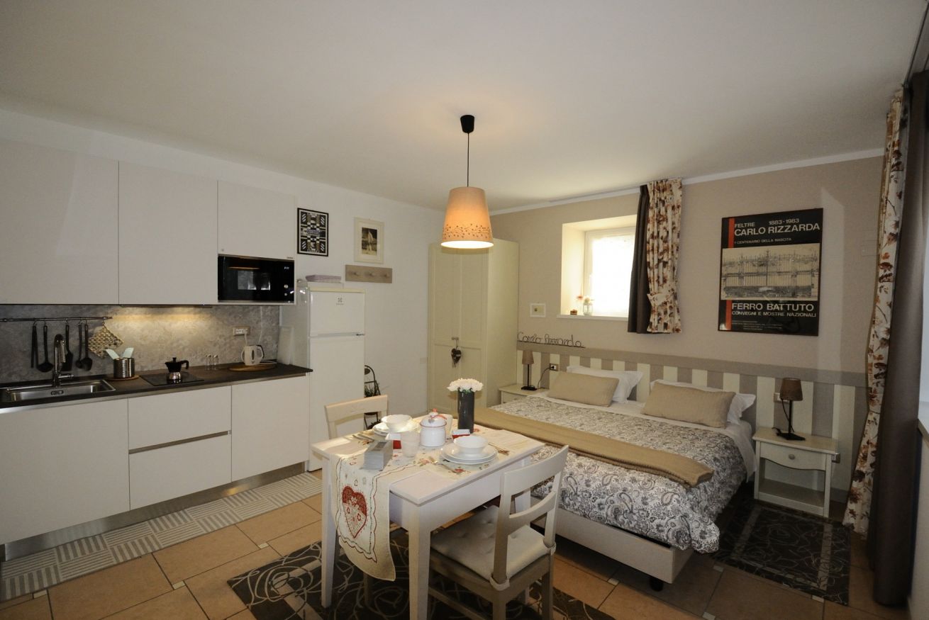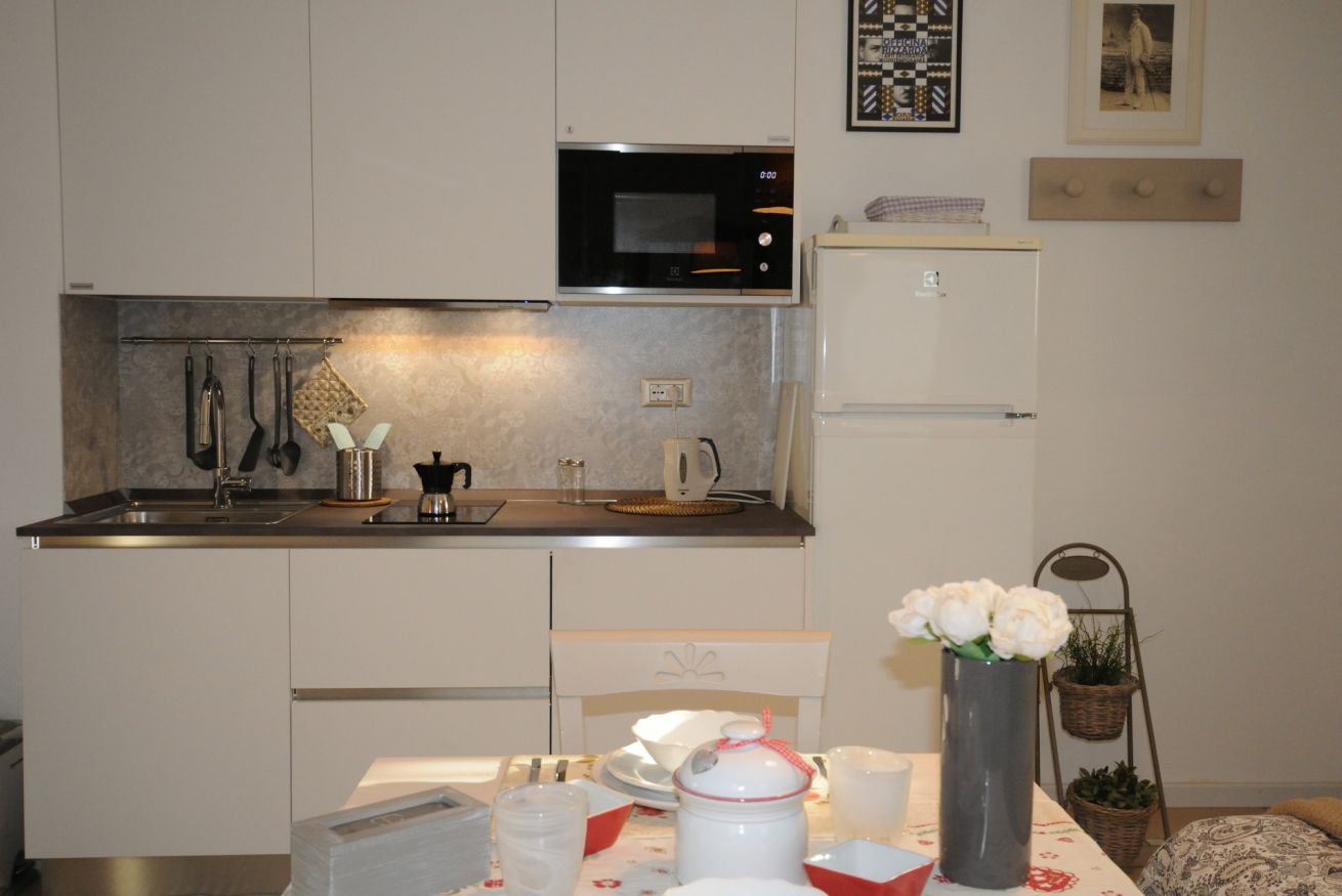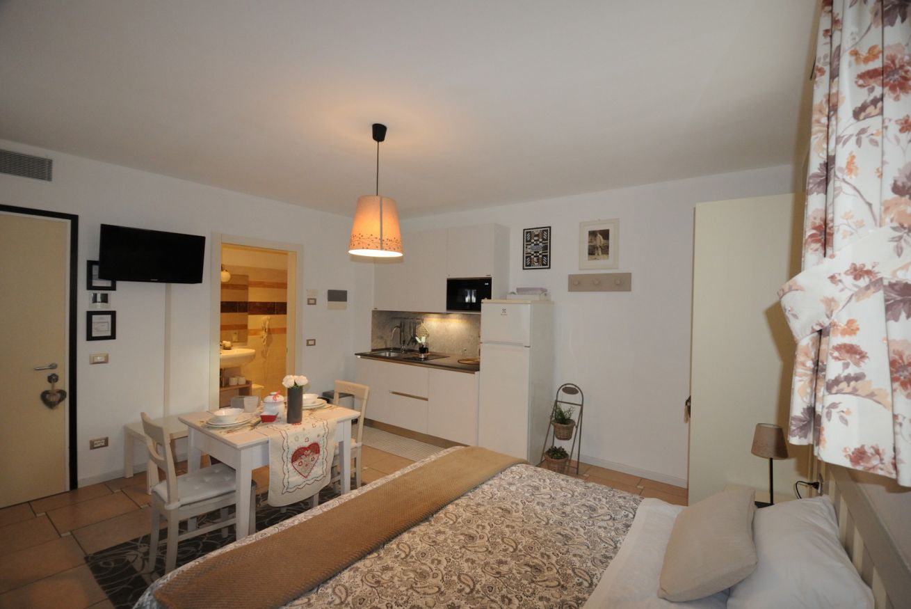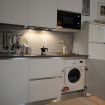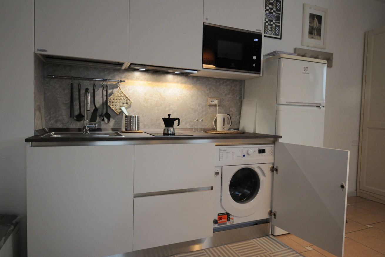 Confortevole monolocale con angolo cottura, microonde, bollitore, frigorifero, congelatore e lavatrice.