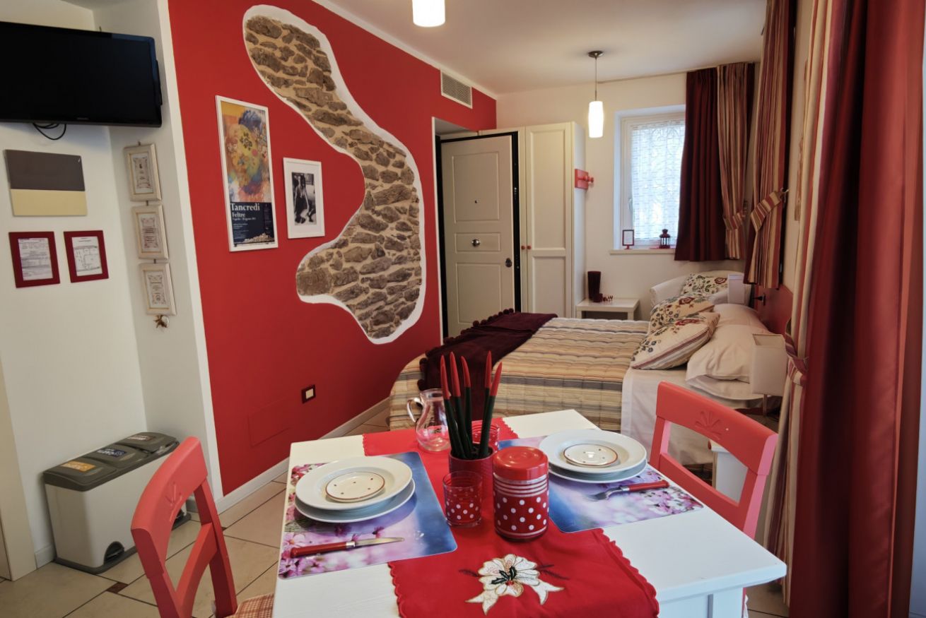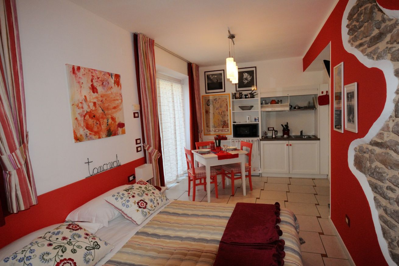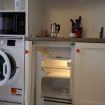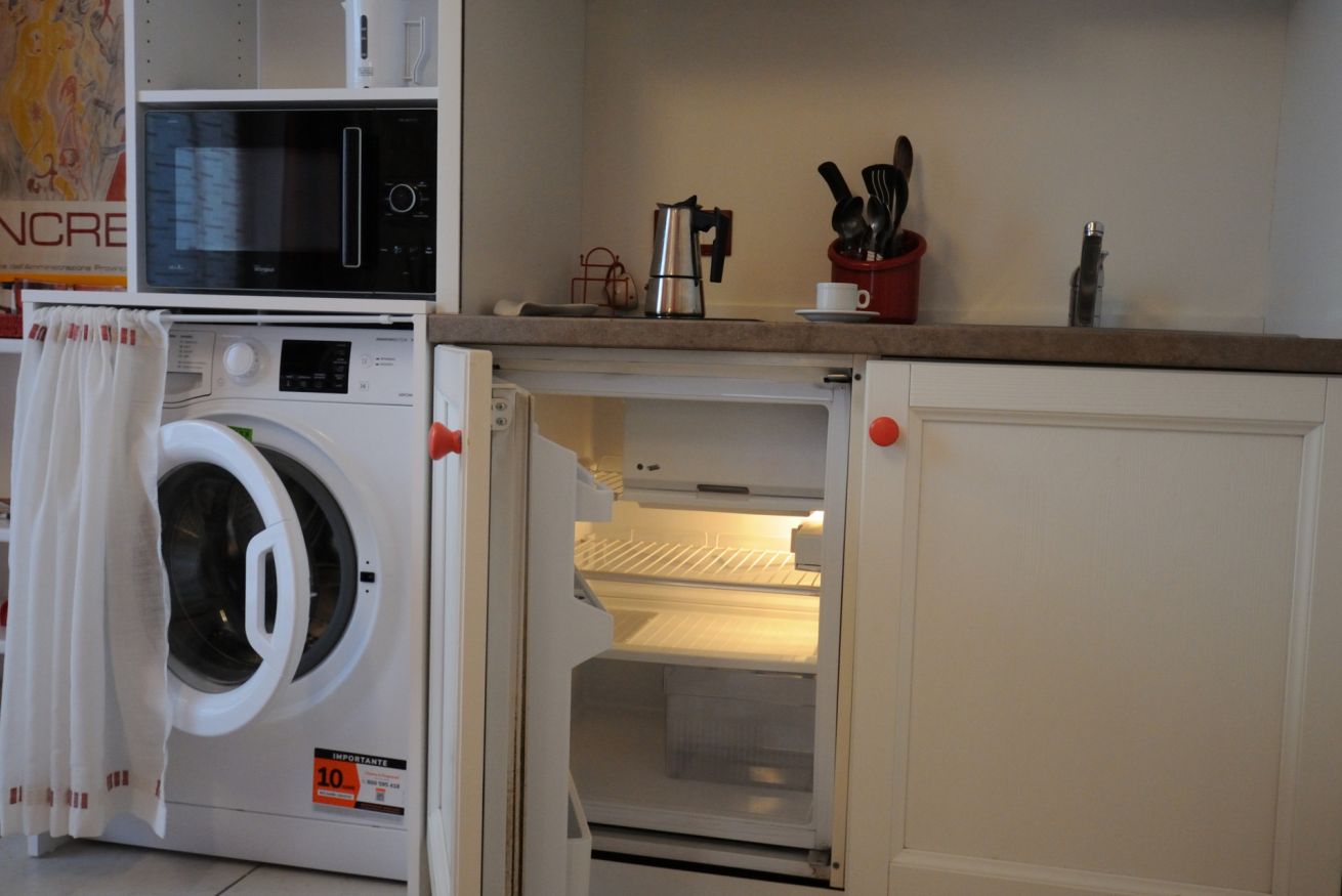 Accogliente e silenzioso monolocale con angolo cottura, microonde, frigorifero e lavatrice.